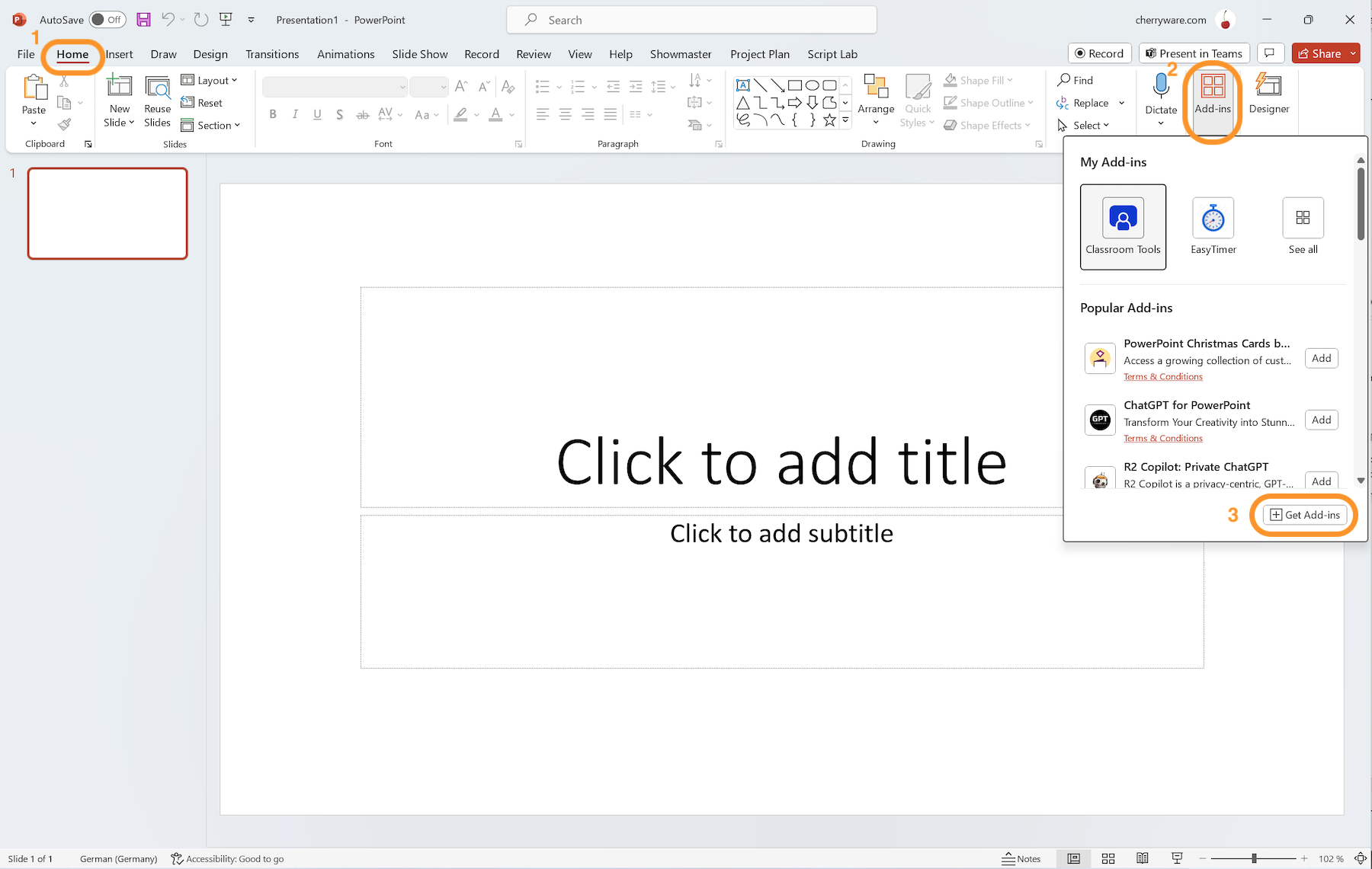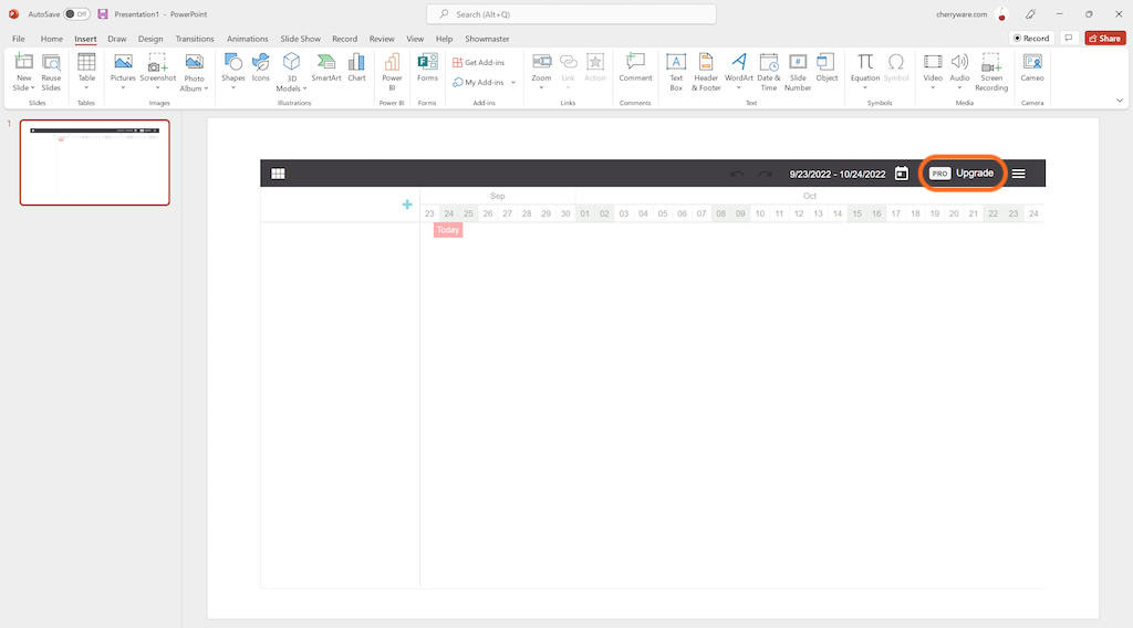 b) If you have not installed Project Plan, go to Get Add-ins and install Project Plan, then insert the add-in on the current slide.